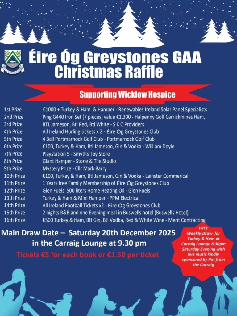 As well as raising funds to contribute to the running of our club and improving our facilities, this year, some of the income from the draw will be donated to Wicklow Hospice